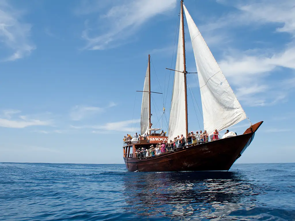 Embark on a unique journey aboard Shogun, an impressive oriental-inspired sailing ship built from noble teak wood for an Arab sheikh. Now, this jewel of the sea is at your disposal to explore the waters of Tenerife. Choose between 3 or 5-hour tours and enjoy breathtaking views, marine wildlife, and relaxation on board.